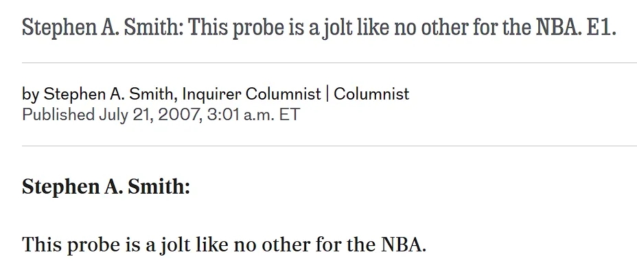 在《一桩事先张扬的谋杀案》中,相信主角清白的法官,说出了这么一句话:「给我一个偏见,我将撬动地球」。而史蒂芬·A·史密斯的职业生涯,某种意义上可以概括为:给我一个詹姆斯,我将撬动体育圈最多的流量。