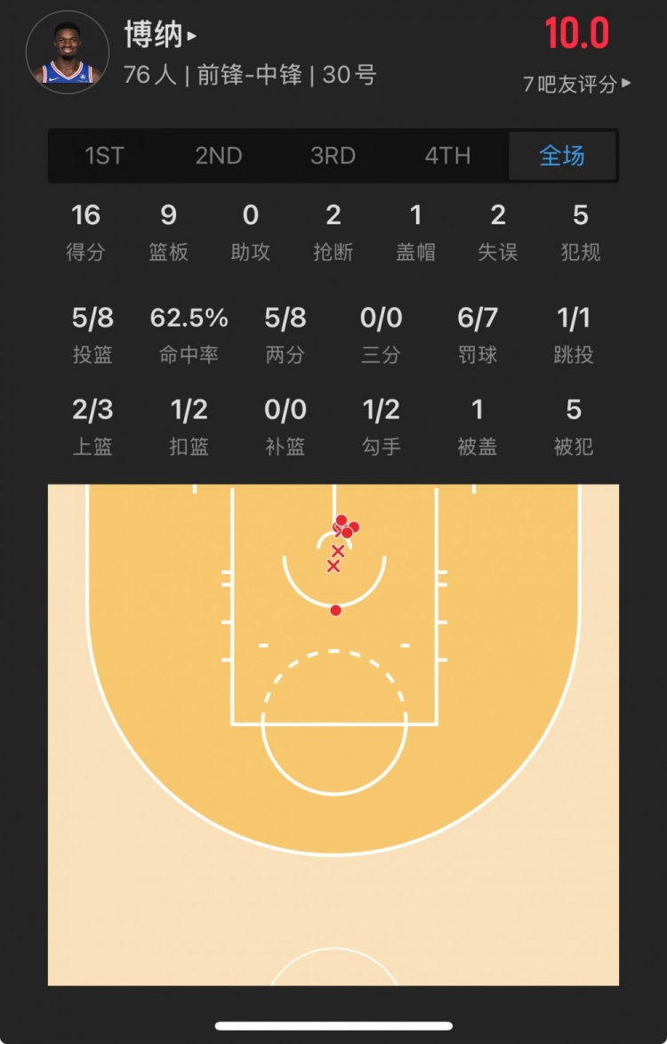 76人41号秀 阿德姆-博纳 登场33.6分钟