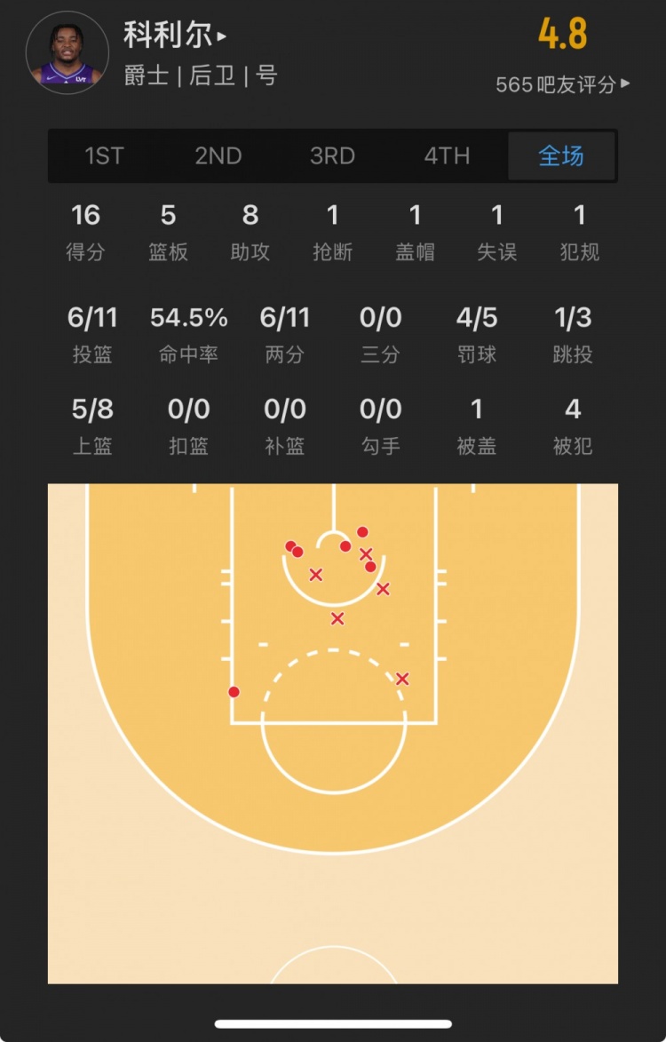 爵士29号秀 以赛亚-科利尔 登场36.1分钟