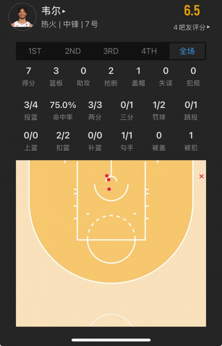 热火15号秀 克雷尔-韦尔 登场15.4分钟