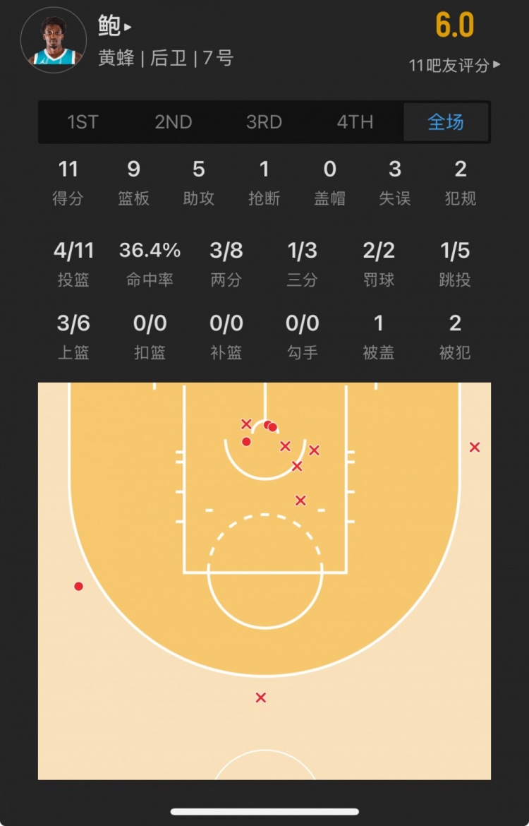 黄蜂落选秀 达米恩-鲍 登场33.1分钟