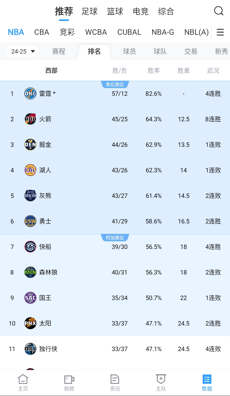 残阵湖人惨败雄鹿排名降至西部第四!没比赛的掘金躺升1名⛏️
