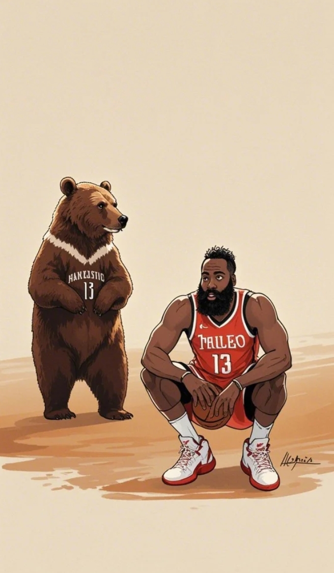 【AI绘图】宠物!哈登化身猎熊客轻松擒拿棕熊~