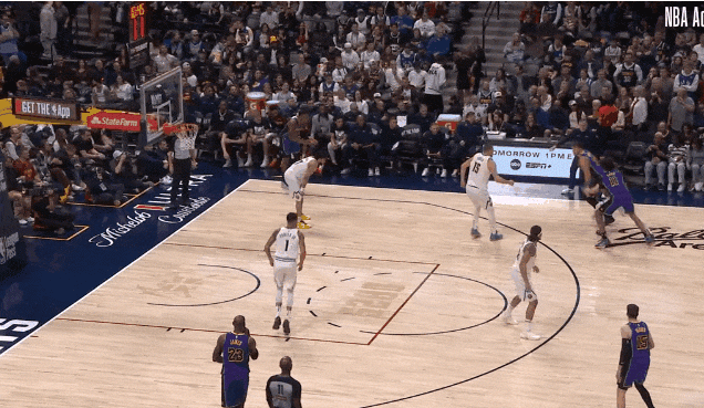 对掘金,第三节弱侧接卢卡的长传终结——之前他都是负责传球的那个。