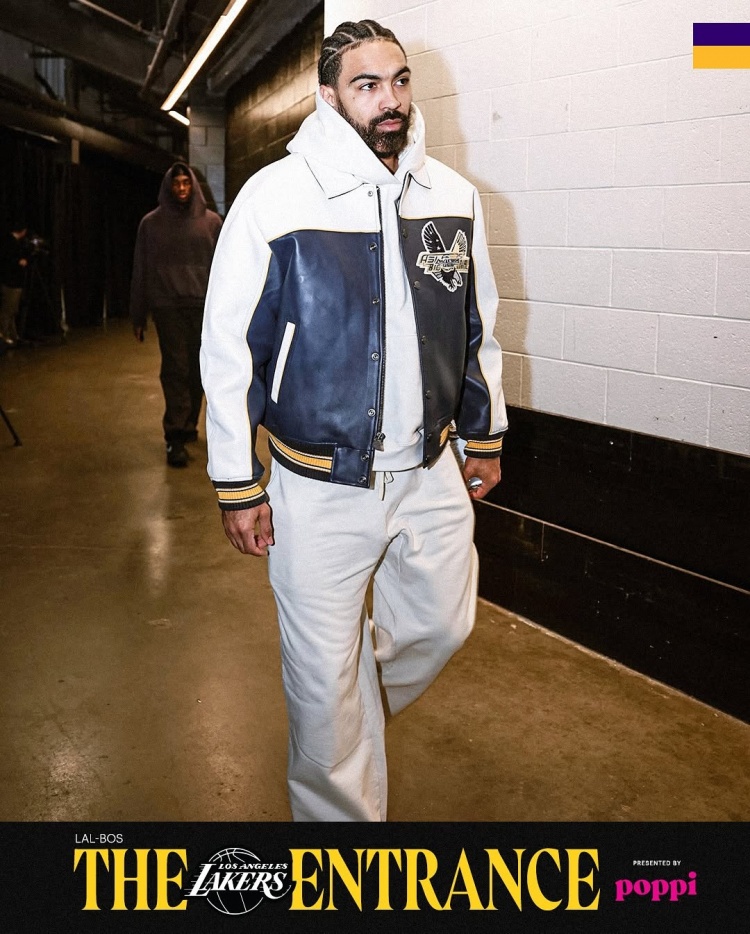 湖人众将入场穿搭:东契奇低调如常 文总夹克套卫衣 老詹帽子吸睛