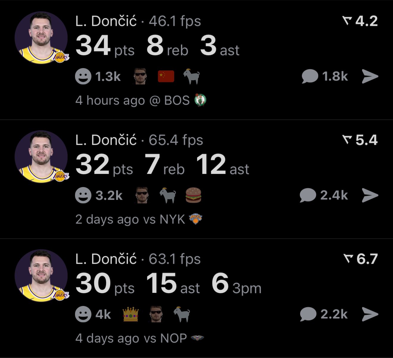 数据显示,东契奇(26岁零9天)是2004年科比(25岁零218天)之后拿下三连30+最年轻的湖人球员。