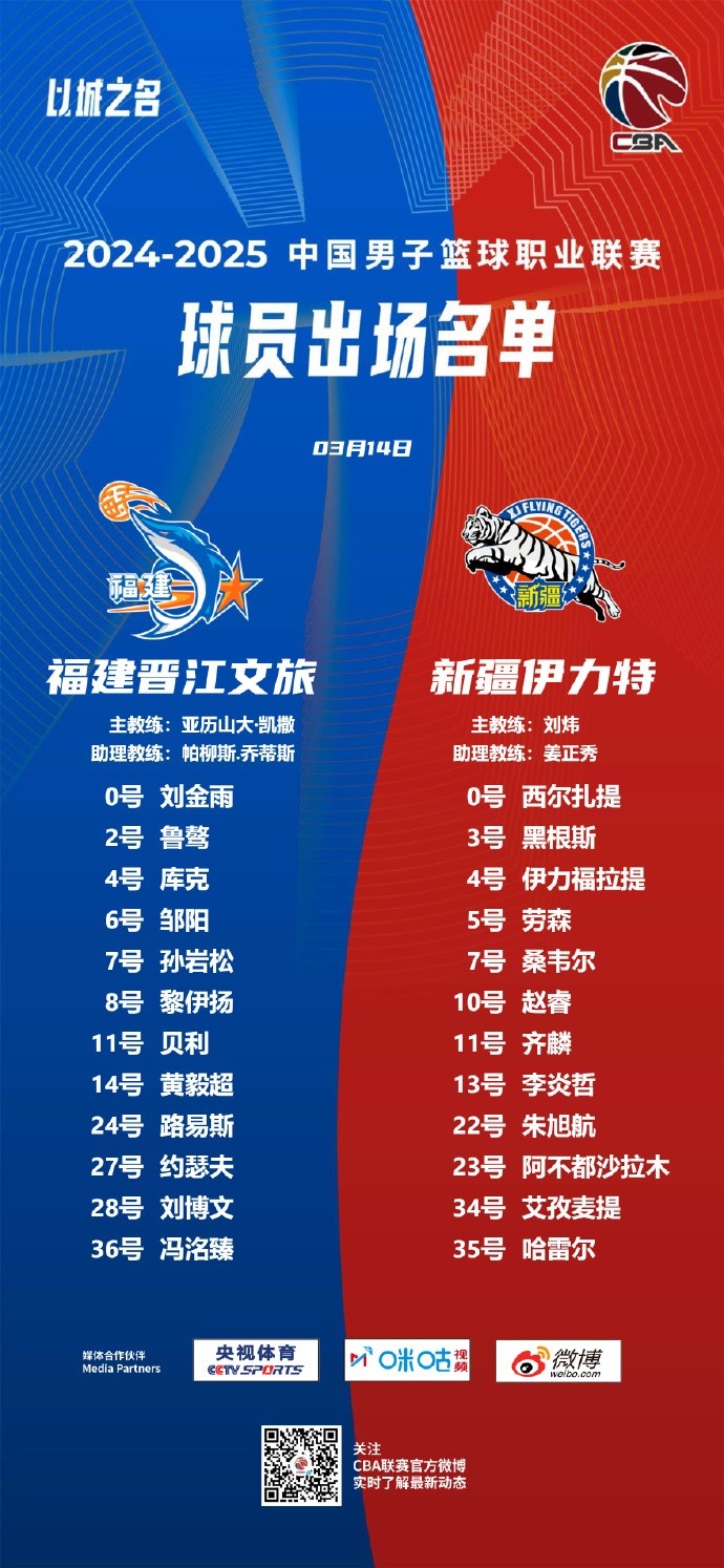 3月14日讯 今晚7点35分,新疆男篮将在客场挑战福建男篮。