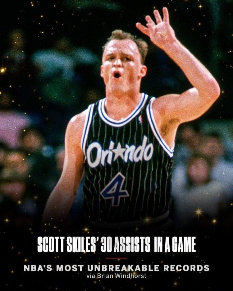 这一纪录已经经受住了时间的考验,自1990年12月30日以来,尘封了超过30年。斯凯尔斯在那场比赛第四节的前六分钟一直停留在29次助攻,追平了凯文-波特在1978年创下的纪录。直到比赛最后一分钟,他才送出第30次助攻,成功打破了纪录。斯凯尔斯在那个赛季场均助攻8.4次,后来还曾单场送出20次助攻。那个夜晚斯凯尔斯个人得到22分,率领魔术以155分的队史最高得分战胜了掘金。近年来最接近这一纪录的是2017年的拉简-隆多,效力鹈鹕时单场送出25次助攻。过去10个赛季里,只有隆多和威少曾单场送出超过22次助攻。