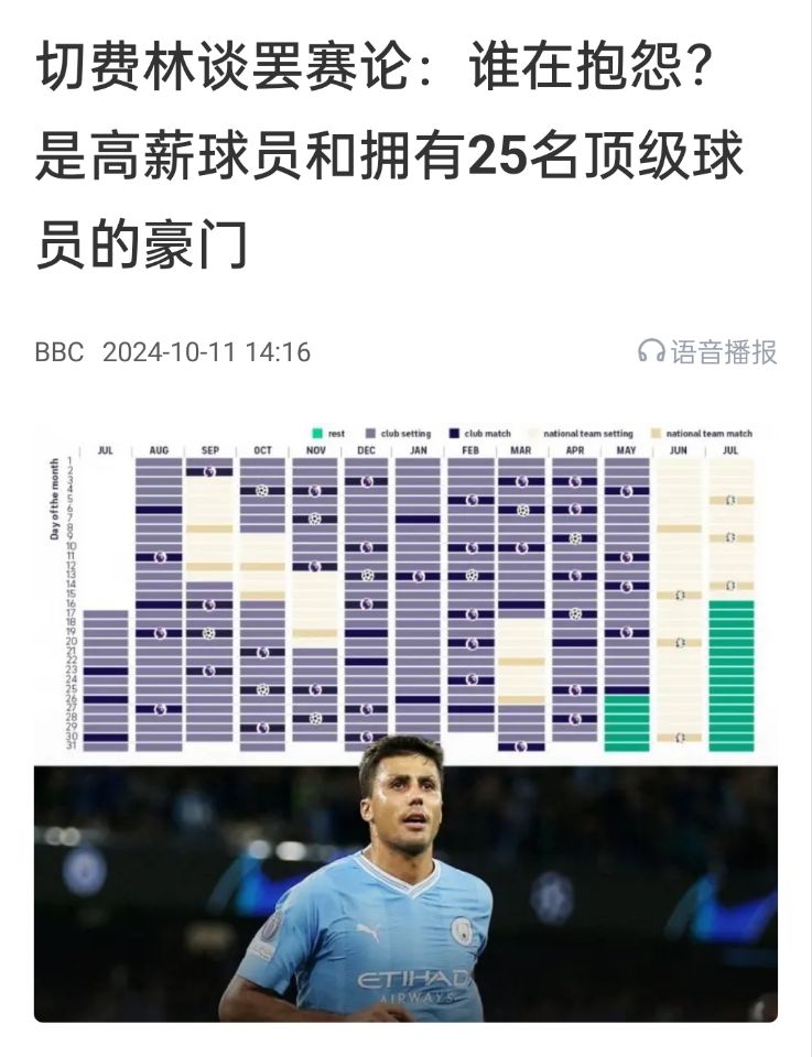 切费林还表示小球队的声音被忽视了:“那些薪水更低的球员和勉强凑足11人的球队没在抱怨,他们喜欢踢比赛。”