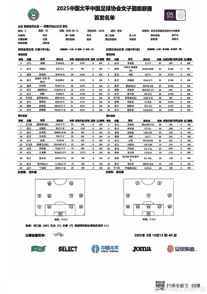北京时间3月16日15:00,2025中国太平中国足球协会女子超级联赛第三轮,河南万仙山女足客场对阵陕西志丹女足。