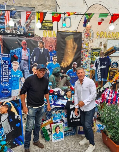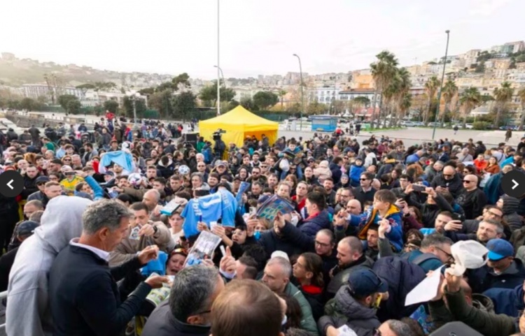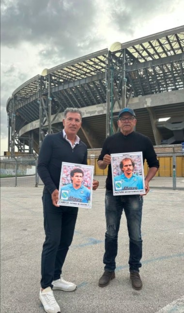 这两位那不勒斯传奇也拿着自己球员时代的照片来到马拉多纳球场外,他们被球迷包围并为球迷签名。