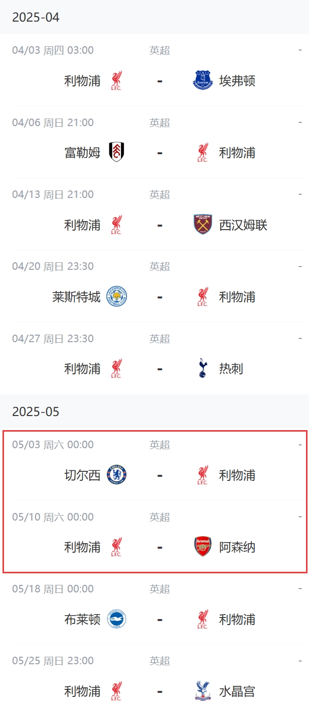 BBC分析指出,如果两队保持住目前的分差,那么利物浦只要在倒数第4轮,也就是第35轮客场击败切尔西,就可以提前3轮锁定英超冠军。