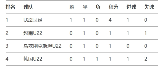 U22邀请赛积分榜:U22国足1胜1平0失球暂居第一,末轮对阵越南