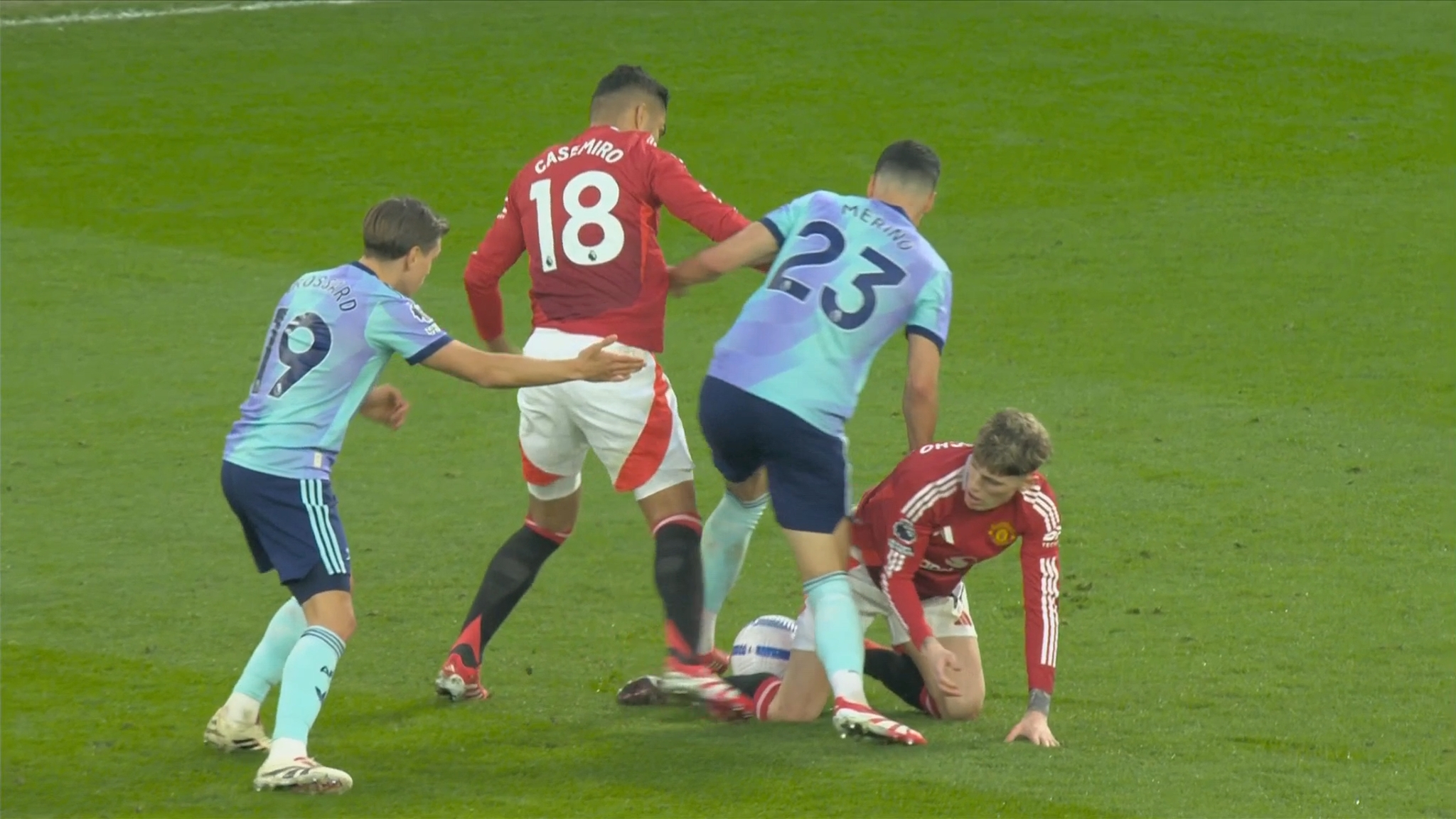 03月10日讯 在天空体育的《裁判观察》节目中,前英超裁判德莫特-加拉格尔针对昨夜曼联vs阿森纳的潜在争议判罚点进行了评议。