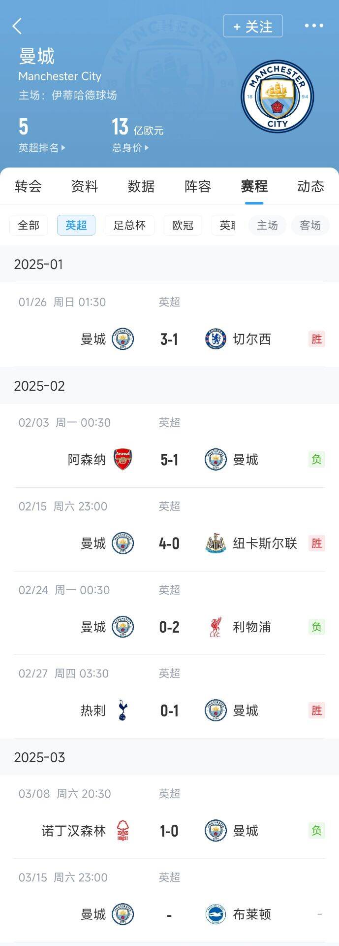 3胜3负对于这赛季的曼城来说完全可以接受,而接下来他们将迎来魔鬼赛程的最后一战:第7布莱顿。