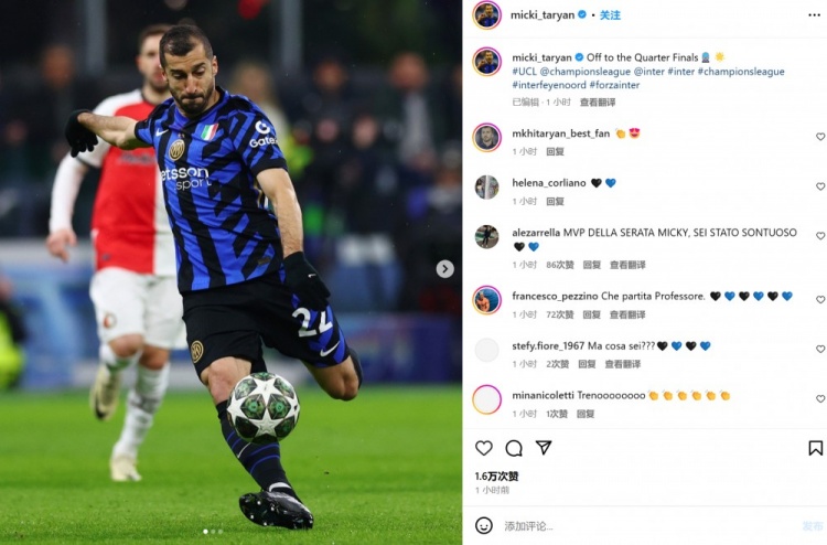 3月12日讯 国米在本轮欧冠主场2-1再次击败费耶诺德,他们将在欧冠八强战和拜仁相遇。队内多位大将也通过社媒晒照庆祝晋级。