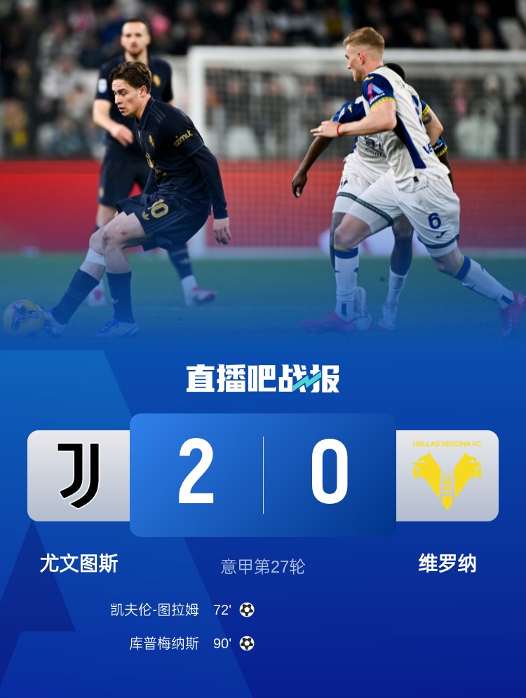 图拉姆破门,尤文2-0战胜维罗纳,取得意甲5连胜,积分榜上仍居第4名。