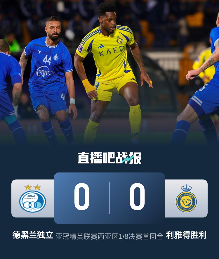 杜兰屡失良机、C罗缺阵,利雅得胜利客场0-0战平德黑兰独立。