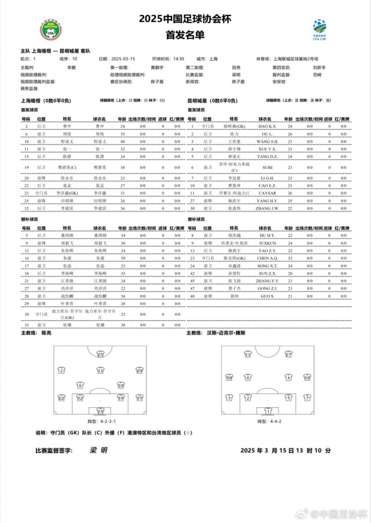 (注:比赛名单图片取自中国女足官方微博)